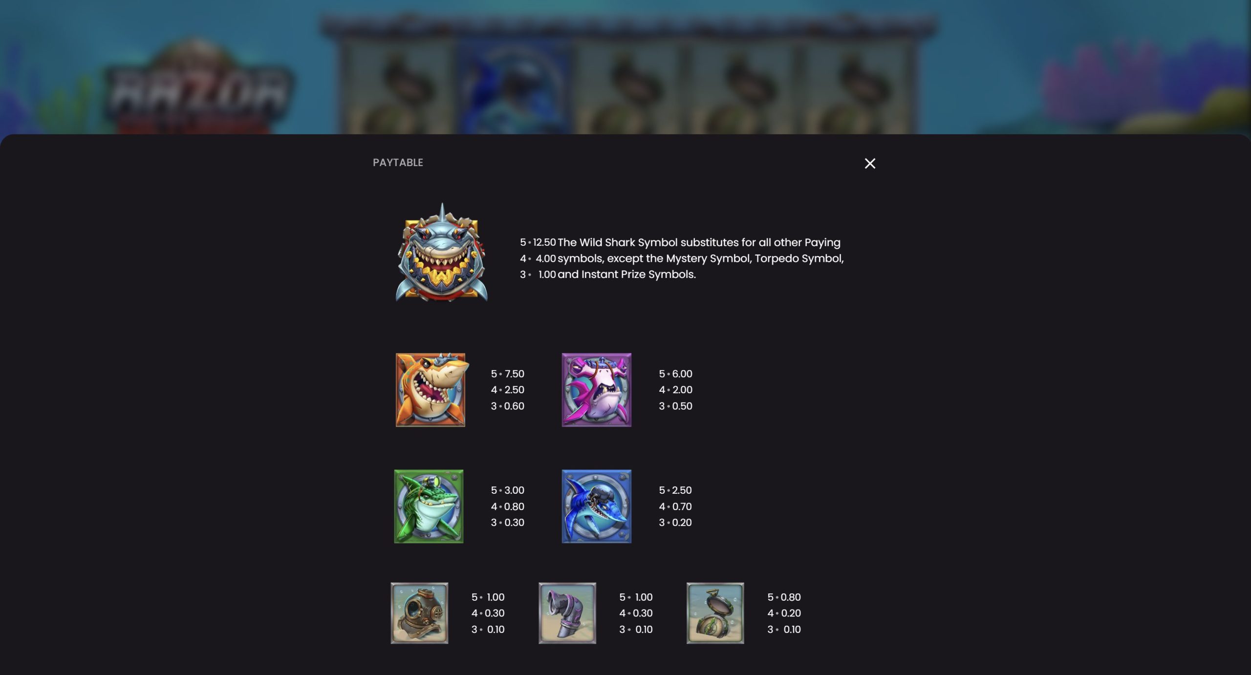 - Konverter – Dieses Symbol bewegt sich mit allen Gewinnsymbolen auf den Walzen. Alle übereinstimmenden Symbole werden in goldene Hai-Symbole verwandelt, die anschließend die Rasierklingen-Enthüllungsfunktion auslösen können.